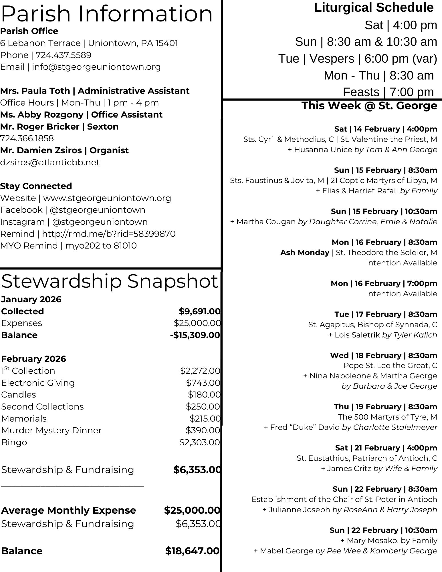 eBulletin | 15 February 2026 | Cana Sunday Feb 15 Written By St. George Maronite Church . Download eBulletin View fullsize View fullsize View fullsize View fullsize View fullsize View fullsize View fullsize View fullsize St. George Maronite Church .